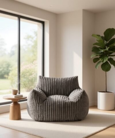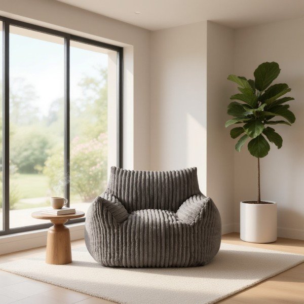 Ce pouf grande taille en gris joue la carte du confort… sans faire de bruit. Tu le poses dans une pièce, et d’un coup, ça devient un coin lounge : lecture, séries, gaming, sieste express — tout est permis. Sa forme enveloppante te cale naturellement, et le velours côtelé ajoute ce petit côté premium qui donne envie de s’installer “juste 5 minutes”… et d’y rester.